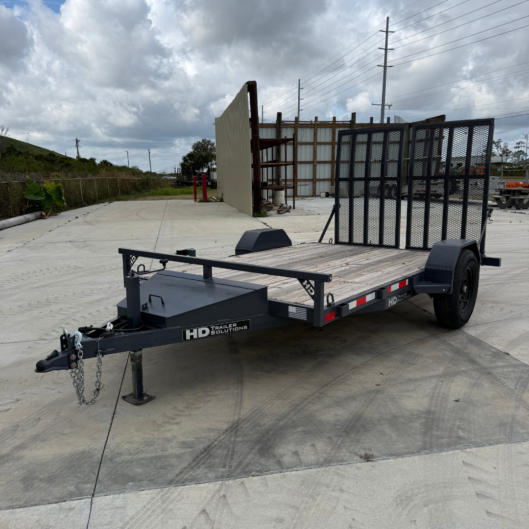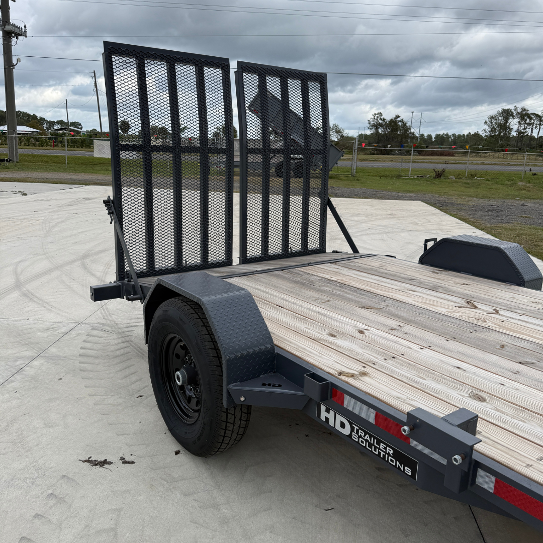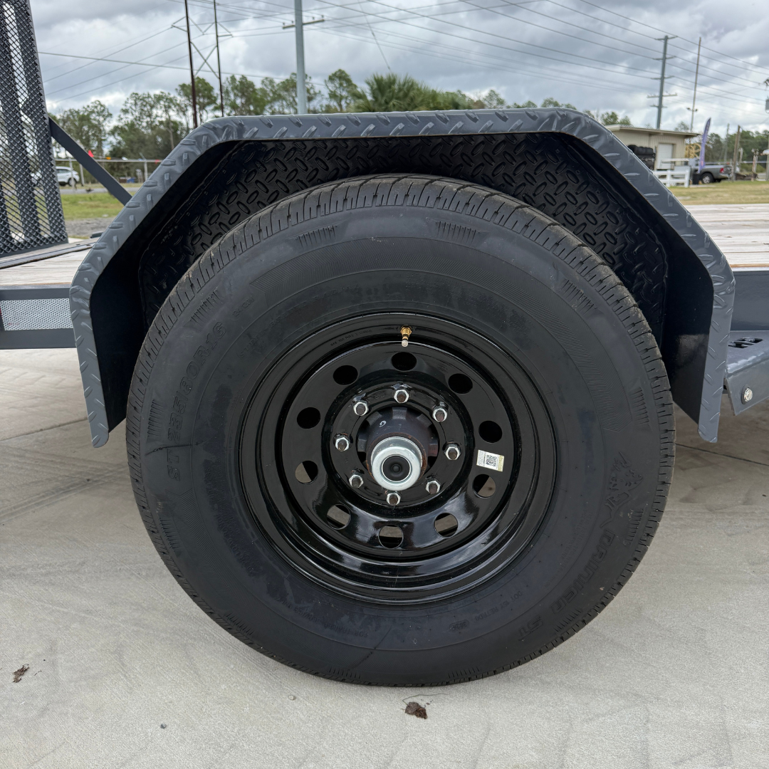 Featuring a split-gate ramp system for easy loading, four welded D-rings with a stake pocket at the 4-ft mark, a side-mounted spare bracket, and an adjustable 14K coupler, this unit provides practical functionality for safely hauling small machinery, ATVs, lawn equipment, and jobsite tools. With a standard 8K drop-foot jack, sealed wiring, and reinforced single fenders, this trailer is engineered for consistent, trouble-free operation.